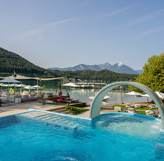Natürliches Wasser, das Sie umgibt. Sie einfängt, loslässt – und treibend im Rhythmus der Natur auf eine Reise zu sich selbst schickt. Von der Sonne geküsst. Eins mit der Urkraft des Lebens – und umringt von einer faszinierend-unberührten Kulisse. Hügel. Berge. Der See und Sie – und ein ganz besonderes Hotel am See, das Wellness auf eine neue Stufe erhebt.
