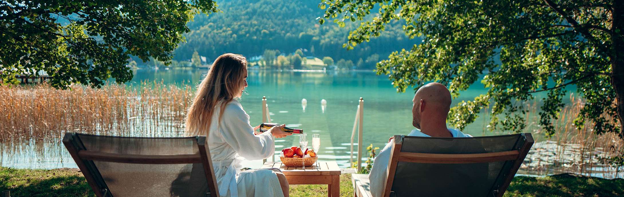 Take a sauna directly above the lake, enjoy the exquisite sauna ceremonies and then dive straight into the fresh water - like Adam and Eve. Refreshing and mild. Ideal for before and after your sauna session. Get your smooth tan on in the sheltered area of our sauna island during your lake spa holidays in Austria.