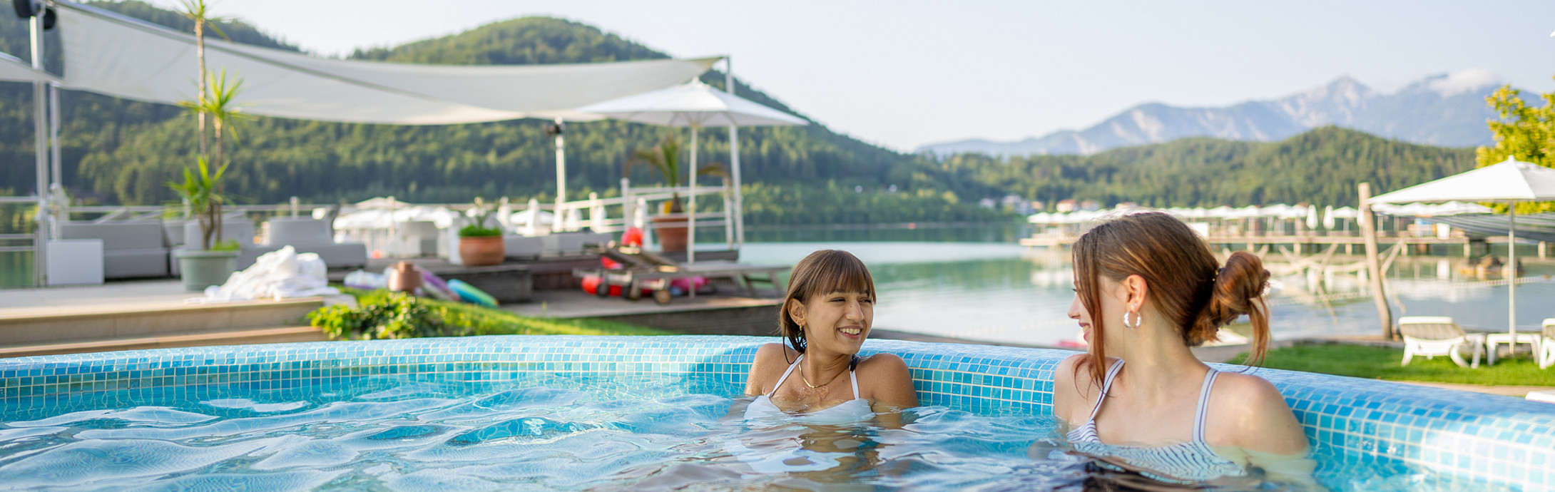 Re-experience wellbeing in your hotel directly at the lake. Enjoy the beautiful cosiness: in the lake and pool lounge of our hotel at the lake. Pure wellbeing – book now and start into our holiday summer!